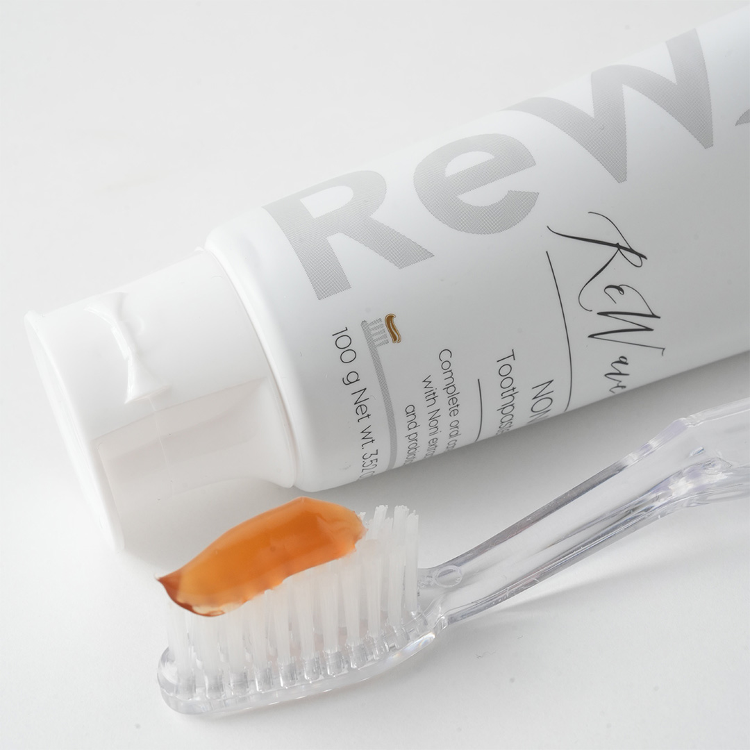 Зубная паста ReWave® NONI — это эффективное и безопасное средство на мягкой гелевой основе с натуральным экстрактом фрукта нони, мягким ПАВ на основе масел кокоса и энзимами папайи, с пред- и постбиотиками для комплексного ежедневного ухода за зубами и полостью рта. Максимально натуральная формула пасты ReWave® NONI бережно, но эффективно очищает поверхность зубов от зубного налета, предотвращает образование зубного камня, заботится о продолжительной свежести вашего дыхания, нормализует микрофлору полости рта и препятствует развитию воспалительных процессов. Не содержит фтора, парабенов и SLS.